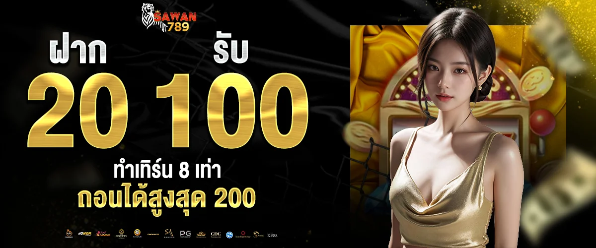 ฝาก 20 → รับเพิ่ม 80 = รวม 100 / ทำเทิร์น 8 เท่า / ถอนได้สูงสุด 200