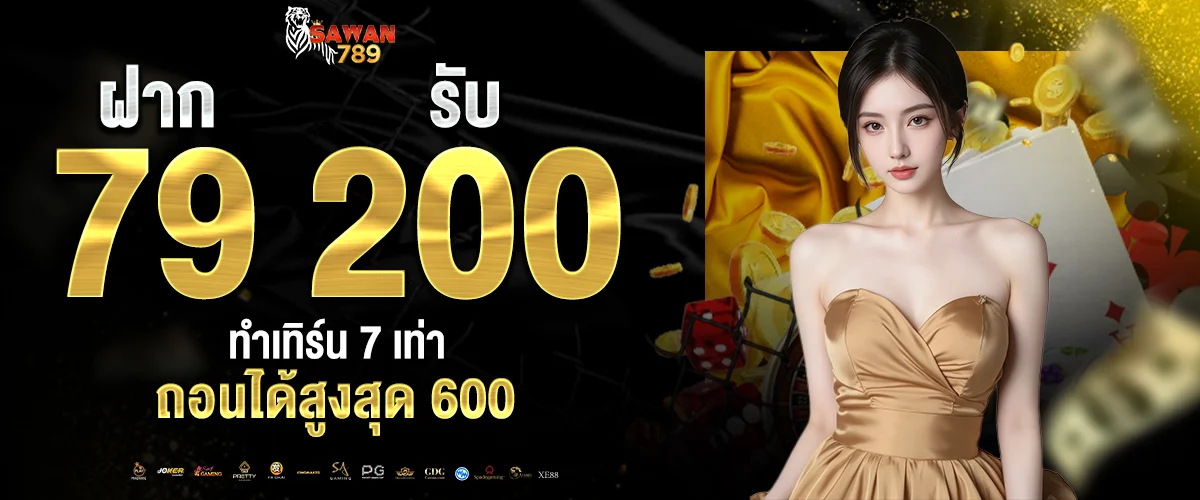 ฝาก 79 → รับเพิ่ม 121 = รวม 200 / ทำเทิร์น 7 เท่า / ถอนได้สูงสุด 600
